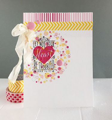 Ik ben begonnen met de jongensversie, met mini-stempeltjes van SU. Behalve het "sterretje" of zoiets, dat komt van een set van de Hema. Ik zocht iets om eht nog wat meer op te vullen en dit paste perfect. De rand vanboven is gemaakt met tape van de Hema en een boord met een stans van Joy. De tekststempel is van Kaisercraft. Alles is gestempeld met inkt van Su. Ik had nog wat scrappersfloss en lint liggen en ben zo vrij geweest om nog wat sequins toe te voegen als "camouflage" ;-)